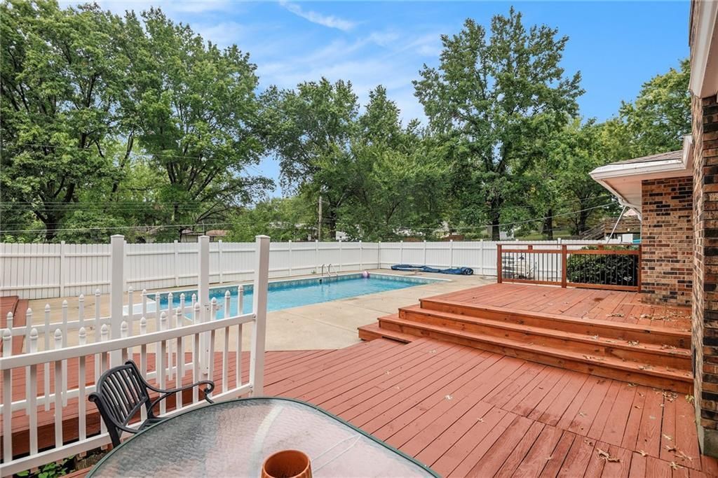 Gorgeous Brick 3 car Ranch on a quiet street; Lots of room here, and a Backyard Oasis! Everything you need on the Main level with 3 Bedrooms, 2 Full Baths and one 1/2 Bath. The Master bedroom On Suite includes a large sitting room. Bedroom #2 has a brand new 1/2 Bath/Closet, Formal Living and Dining rooms, gourmet kitchen with tons of cabinets and granite! The cozy Den has a Fireplace and walkout to the swimming pool, where new decking around the pool sparkles. The Pool and backyard is gated and private. The 1st floor also includes a spacious laundry room and garage access. Now wait, theres more; the unexpected Lower level is anyones dream; glamorous living space with new LVP flooring, a full bath, a Fireplace, a huge wet bar, and access to the lower garage and tons of storage; perfect for a mother in laws suite or teens crash pad! Great schools and a superior location to get anywhere; Barry Road to the Kansas City airport or Zone Rosa to downtown, Parkville or anywhere east or west. This house is ready for you with new carpet, all new paint, new HVAC and recent roof and gutters, a newly poured garage floor, and a beautiful new half bath as well and a freshly sheet rocked master bedroom with newly enlarged closets. Finishing touches include: Newly cleaned sparking windows, and fresh landscaping including tailored bushes. The freshly painted garage has accessible storage above. Great property on a quiet dead end street; Dont miss this Northland Gem! Come for a swim!